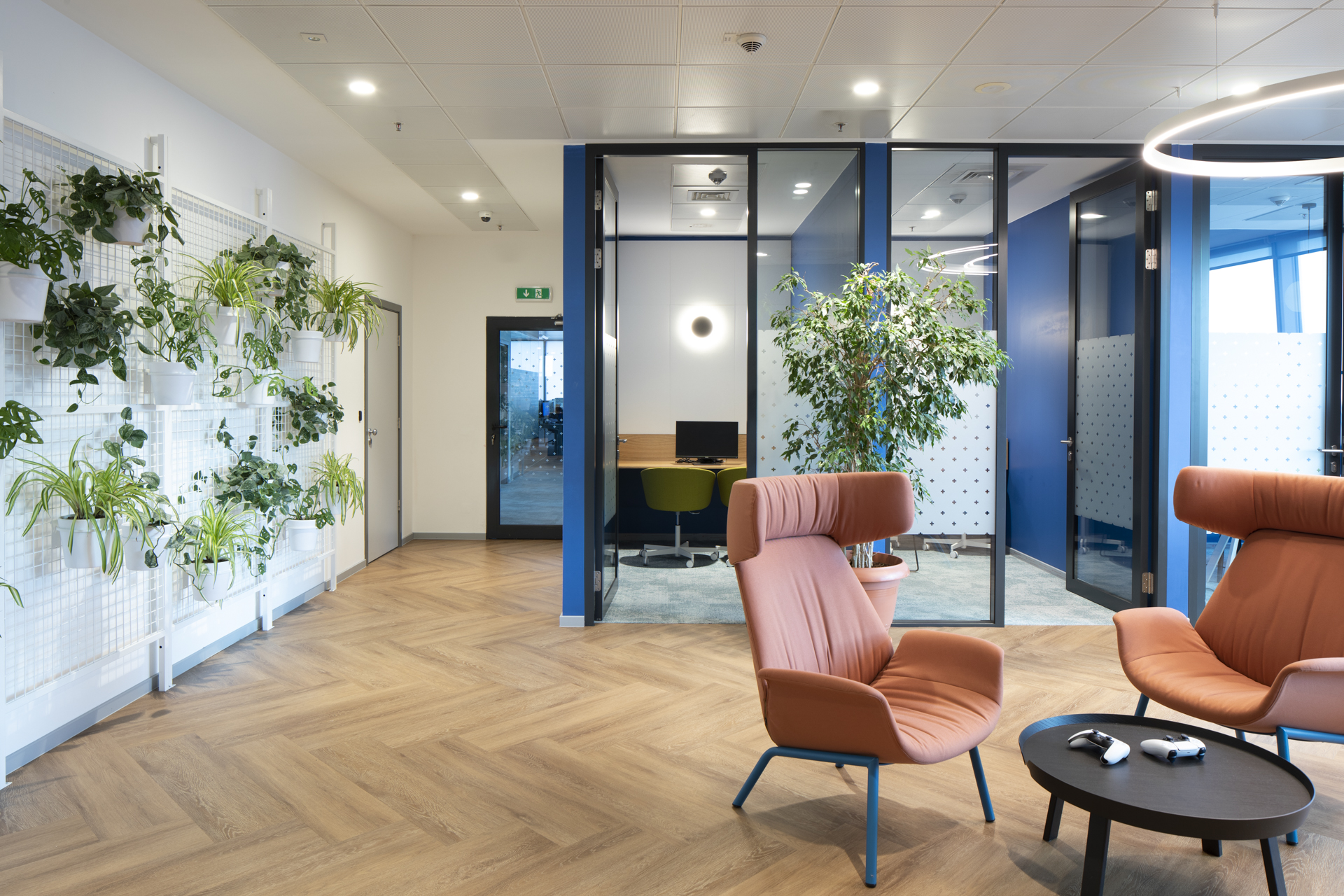 Plus500 is a global fintech company and online trading platform with growing operations in bulgaria. Their goal was to support the setup of a regional office with curated furniture solutions aligned to hybrid tech workflows. We helped solve the challenge of insufficient spatial differentiation and lack of comfort-driven, human-centered work zones. Our approach involved curated furniture solutions including communal kitchen and lounge areas, agile workstations, acoustic zones, and writable partitioning systems (in collaboration with project architects). The project was completed in 4 months, in April 2024.